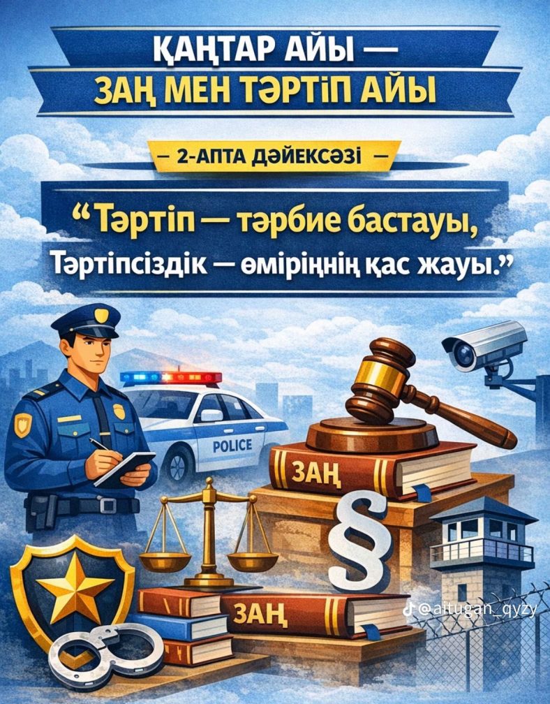 Қаңтар – ЗАҢ ЖӘНЕ ТӘРТІП АЙЫ Апта дәйексөзі – «Тәртіп – тәрбиенің бастауы»