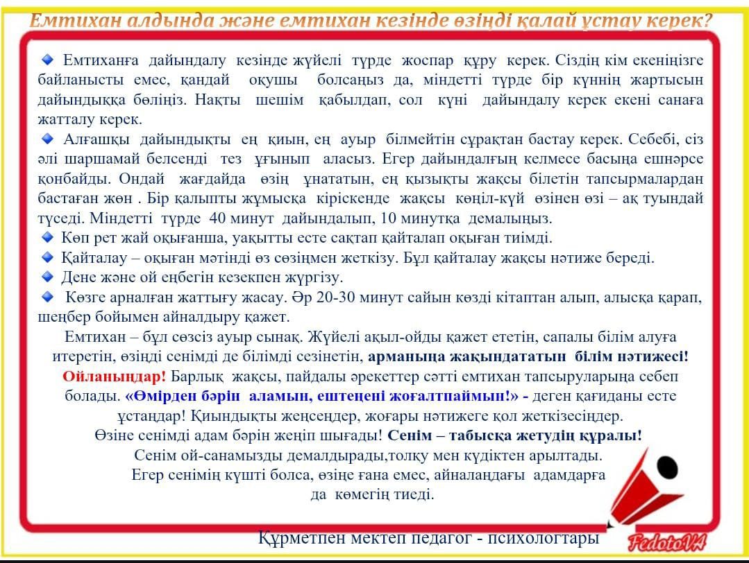 Емтихан алдында және емтихан кезінде өзін қалай ұстау керек: мазасыздықты азайтуға арналған психолог кеңестері