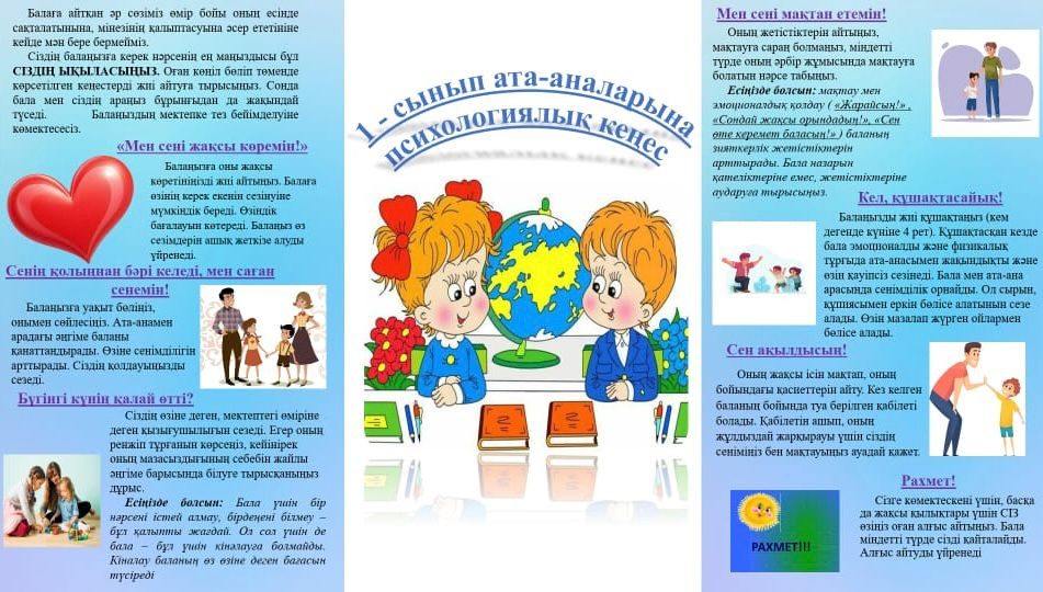 1 сынып оқушыларының ата – аналарына психологиялық кеңес